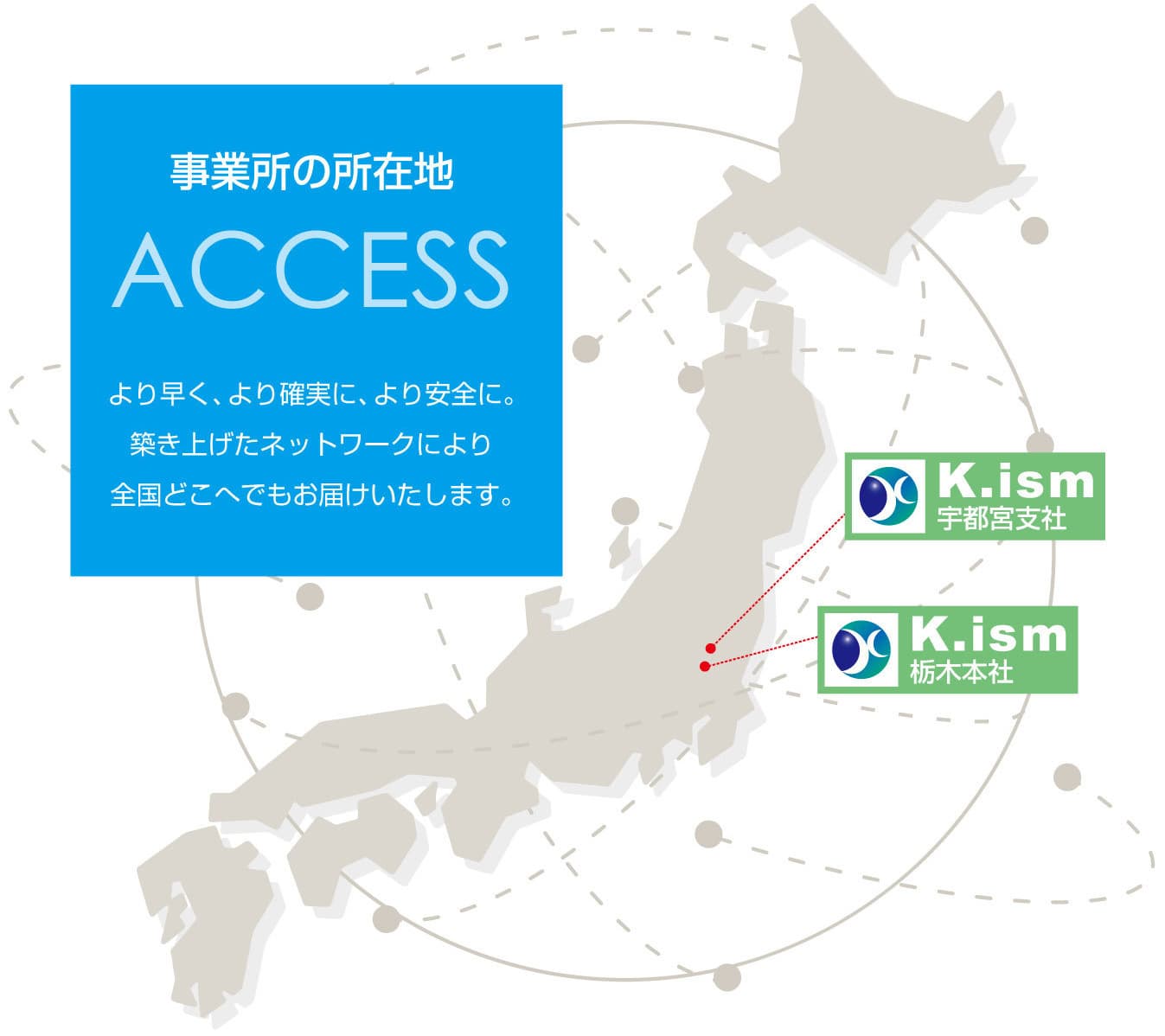 K,ism 栃木本社 K,ism 宇都宮支社 〒329-0415 栃木県下野市小金井5丁目20-7TEL.0285-38-6888 FAX.0285-44-1489 ,bdc04015-ff0a-430c-ba31-35e8308f608c,,{"tempId":"gdefault","gmapWidth":"100","gmapWidthUnit":"%","gmapHeight":"580","gmapHeightUnit":"px","gmapZoomLevel":15,"gmapScrollWheel":true} 〒321-0923 栃木県宇都宮市下栗町2916-9 エイムビル204 TEL.028-678-6946 一般貨物自動車運送事業運輸部 宇都宮営業所 ,2cdb90fd-5fec-46e6-8adf-967bef13ee71,,{"tempId":"gdefault","gmapWidth":"100","gmapWidthUnit":"%","gmapHeight":"580","gmapHeightUnit":"px","gmapZoomLevel":17,"gmapScrollWheel":true}